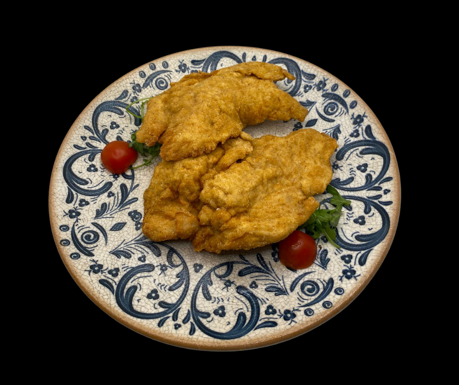 SNITEL DE CURCAN CU CARTOFI PRAJITI SI SALATA